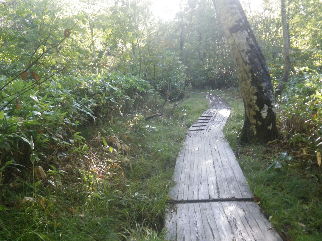 ブナ林が綺麗、と聞き、このルートを選びましたが、所々に出現する湿原が綺麗です。木道が滑り、5?6回は転びました。 #ブナ林が綺麗 #5、6回は転んだ |