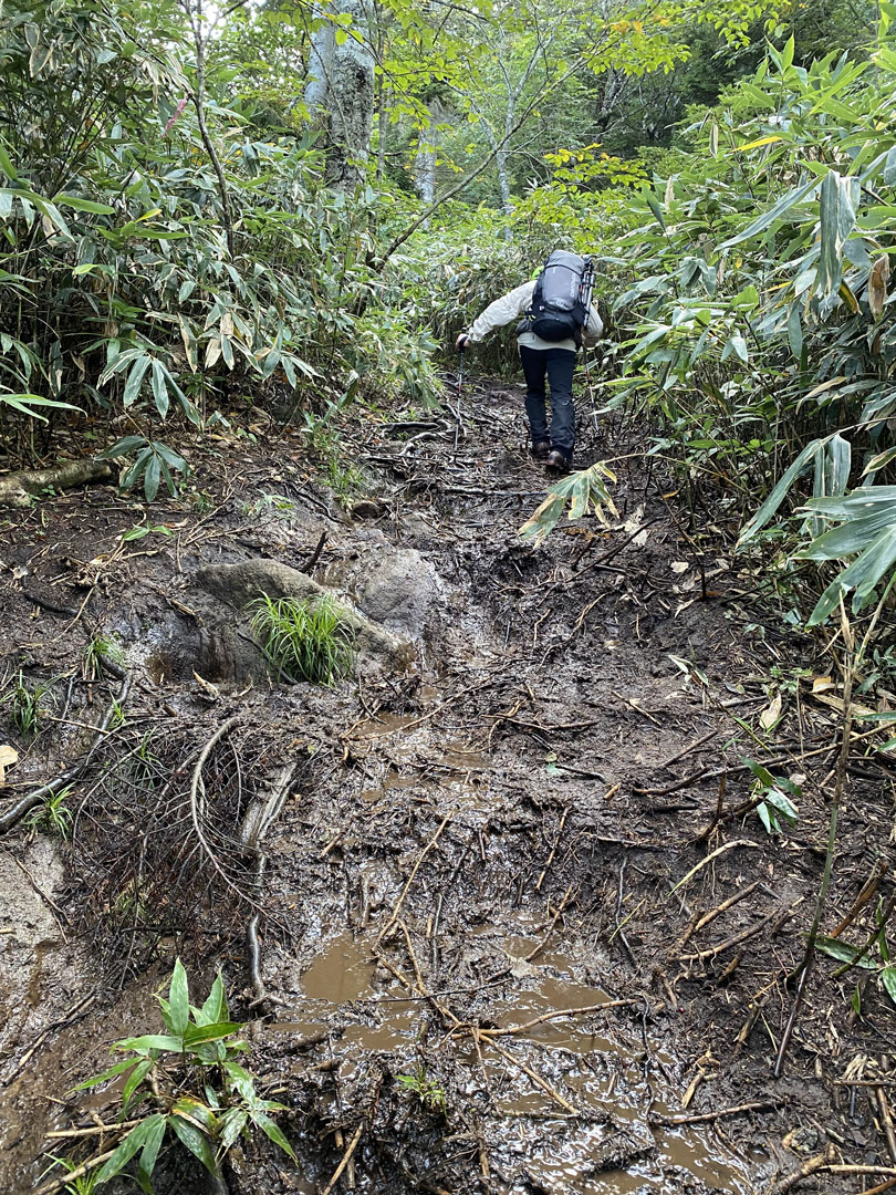 聞いてはいたが、前日の雨でのぬかるみ、登りにくい。 #ぬかるみ |