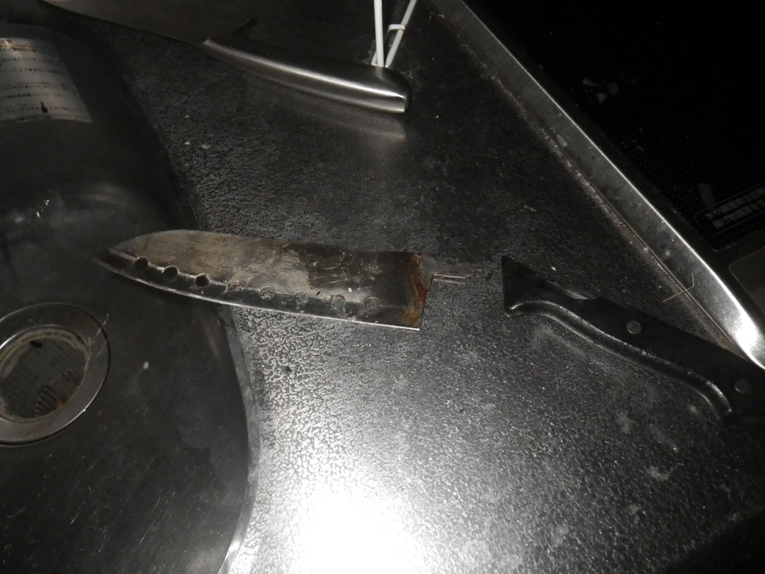 あまり料理しているとは言えない、狭い台所で、包丁が折れました。 #包丁が折れた |