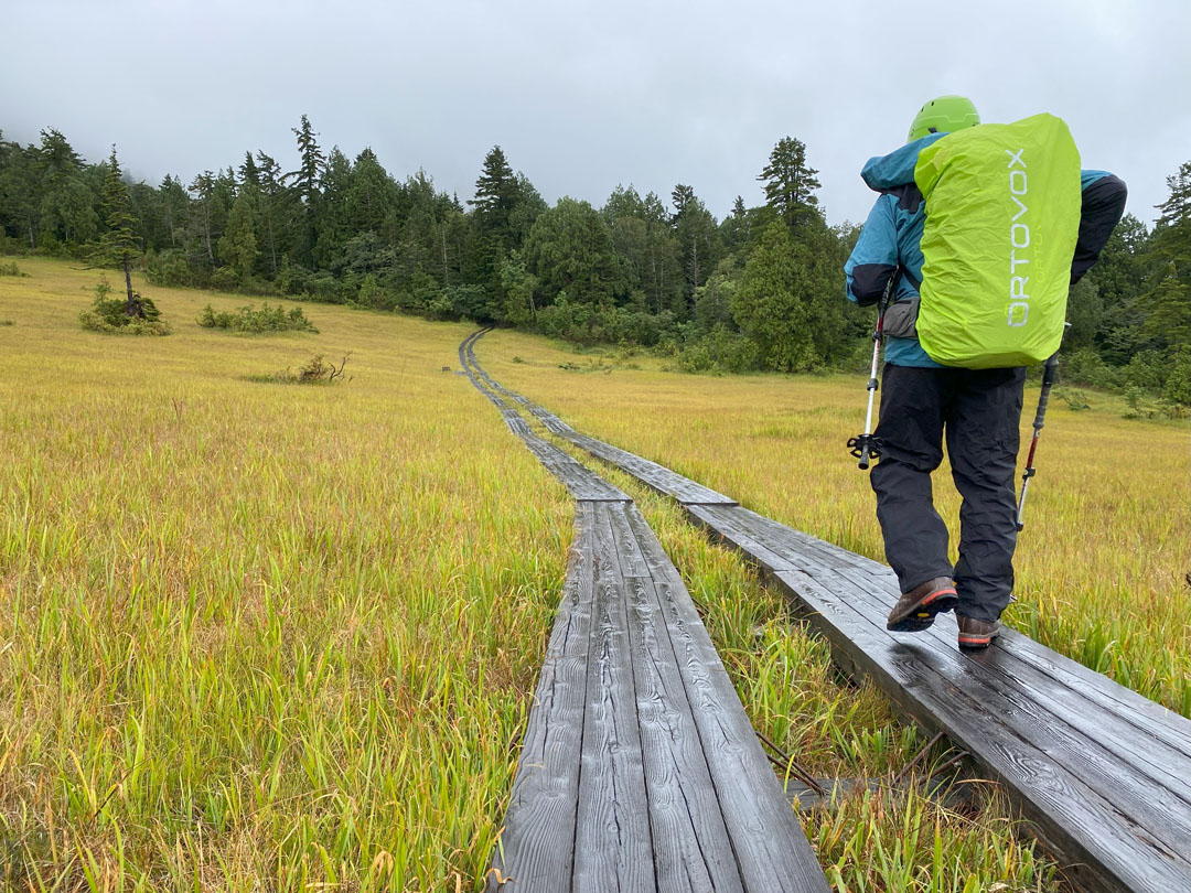 御池です。天気が下り坂で、ついに雨。初日から雨具、テンション下がります。 #初日から雨具 |